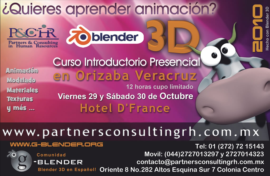 CursosBlender.com y PARTNERS & CONSULTING llevan para ti el Curso de Introductorio de Blender 3D en Orizaba Veracruz