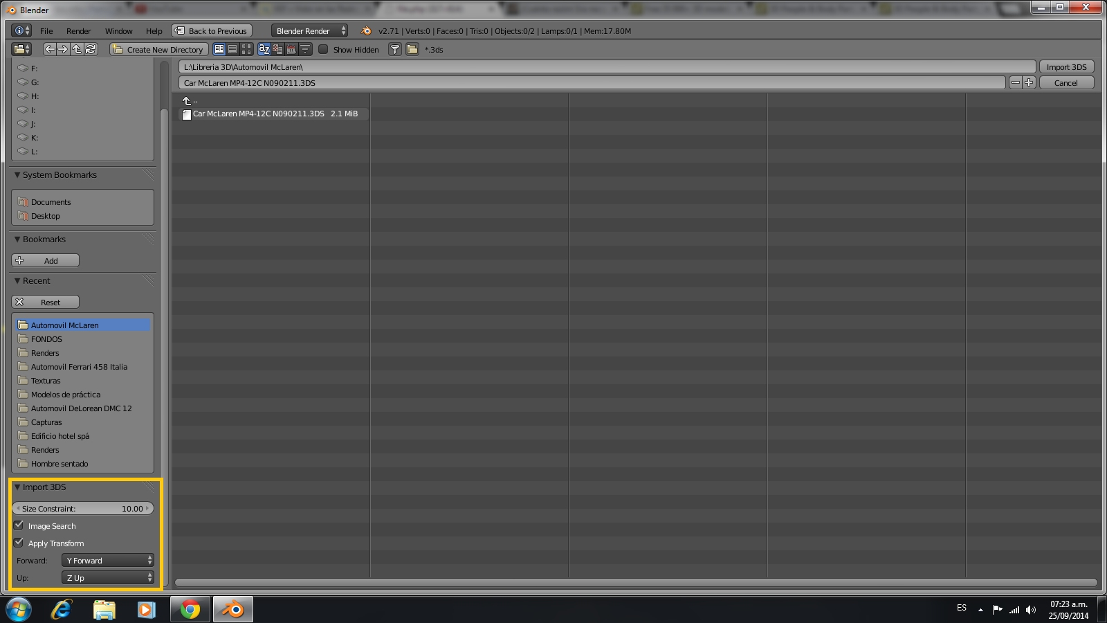 Acabo de revisar y las opciones que me muestras están exactamente igual, para poner un ejemplo pongo el modelo de un deportivo al que importa sin las ruedas del lado derecho, he tenido casos en los que la carrocería y otras partes están giradas 90 grados sobre el resto del modelo.