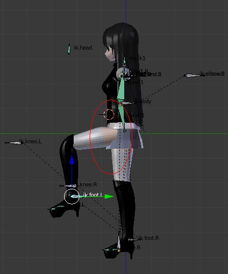 De todas formas, se podría mirar de poner un hueso mas para la falda, de forma que al levantar la pierna, ese hueso tirara de la falda tambien...