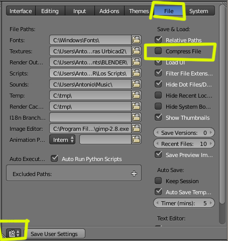 Vas a la ventana de User Preferencxes y en FILE marcas la casilla Compres File.