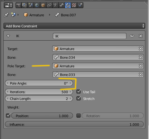 Cuando se coloca ese hueso por primera vez, hay que asegurarse que lo tienes bien encarado al hueso ese de Pole. Y se ajusta con el POLE ANGLE que puedes rotar (subir grados) hasta que te quede bien ajustado.