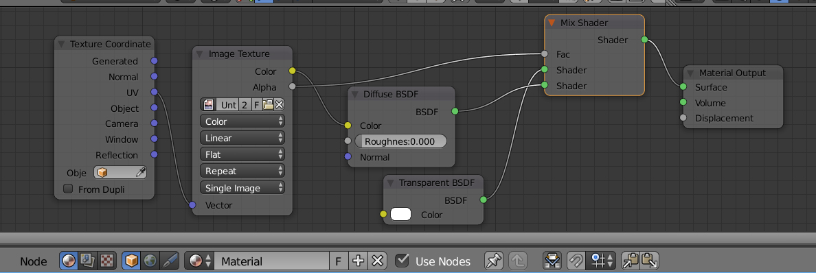 gracias , los nodos son muy simpels, tiene el material de diffuse y el color es la imagen, solo es eso