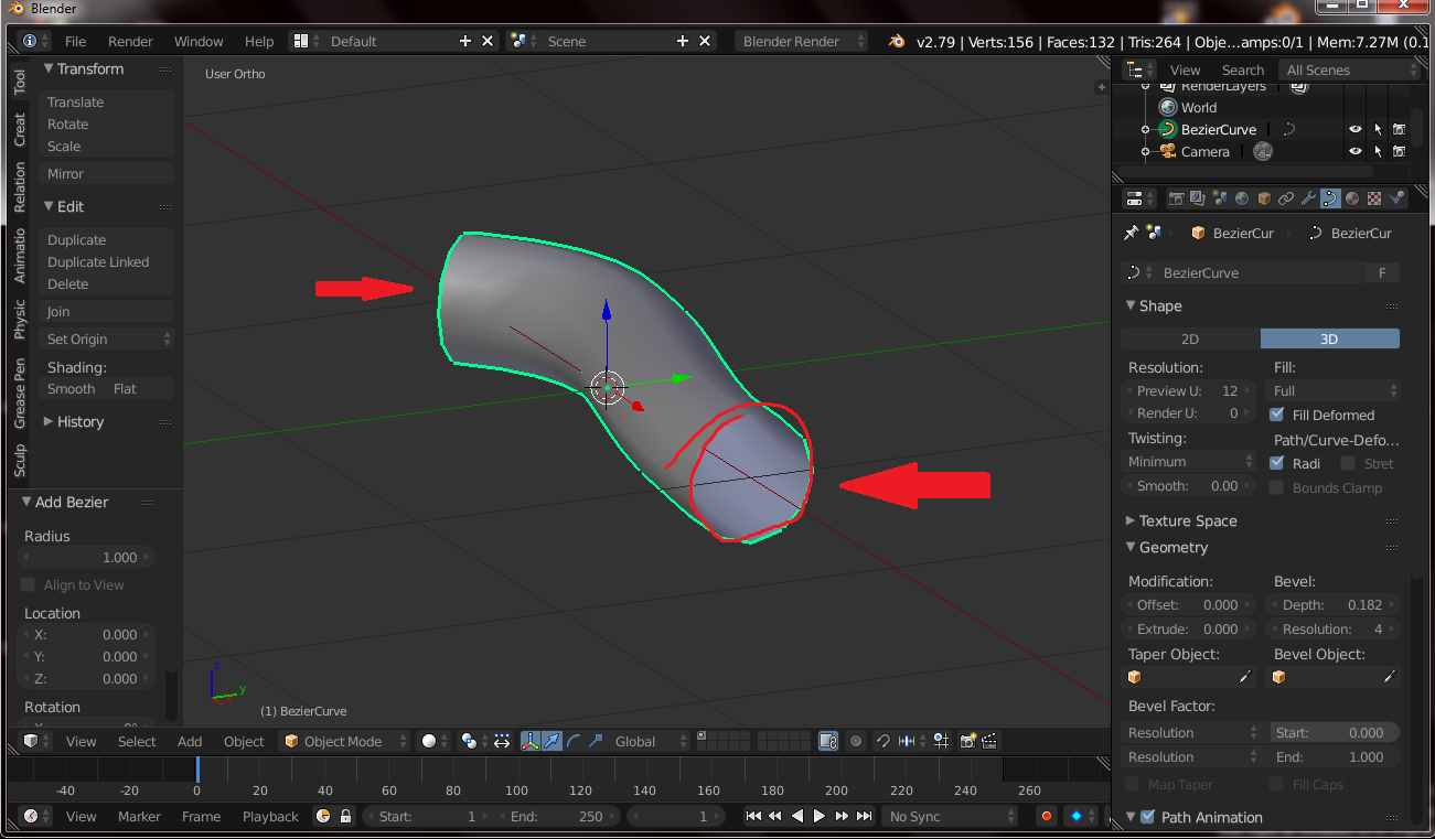 Hola, soy algo nuevo en esto del uso de las curvas, en este caso quise usarlas para crearle la cola a un personaje, el problema es que no encuentro una forma de que no tenga estos huecos que hacen que parezca más un tubo. ¿Hay alguna opción en el panel de las curvas que me permita rellenar esas partes, o cómo lo hago?