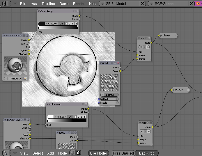 Hola estoy queriendo hacer una renderizacion por nodos que simule un dibujo a mano alzada con algo que vi en Art attack, que es dejar en blanco la parte iluminada, rayar en diagonal en las partes un poco sombreadas, luego rayar en otra direccion en las secciones mas oscuras y asi 3 o 4 veces hasta las sombras.