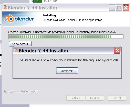 Hola k tal! ¿Que pasa con este blender 2.44 que me da problemas al instalarlo? Me pide un tal archivo system.dll o algo asi... Aqui dejo dos capturas de pantalla, una es del error en la instalacion, ya la otra ya una vez instalado, al intentar arrancarlo, a ver si me podeis ayudar, yo tengo el windows XP profesional sp2.