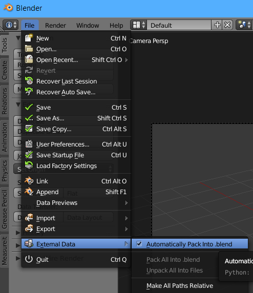 Para no perder las texturas, (Y CUANDO ESTAS SEGURO DE QUE LAS TIENES BIEN) se activa el empaquetador automatico de las texturas de imagen...