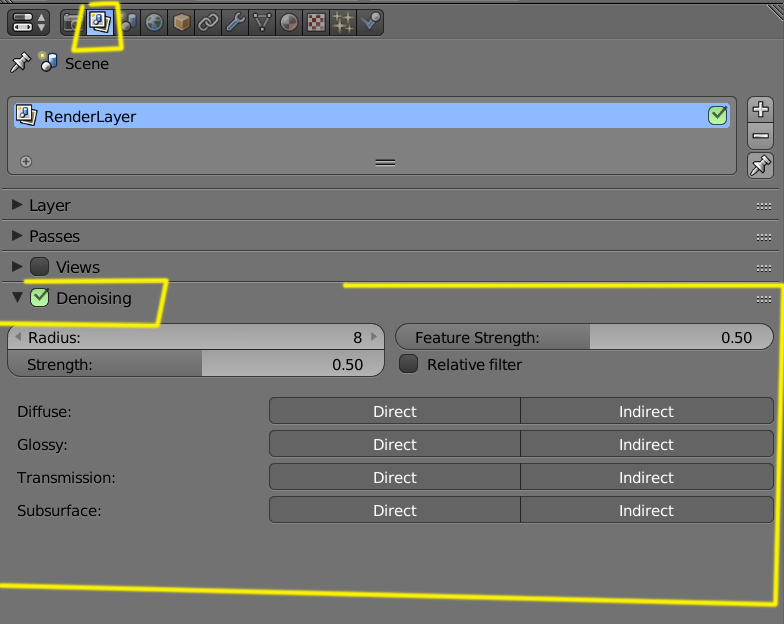 El grano aparece después de haber colocado el punto de luz azul. La textura del personaje es un poco complicada, pero digamos que el problema empezó al mezclar esa textura con otra glossy. Estoy usando 2000 samples en el render (es la primera vez que uso esa cantidad, y ni con esas, he llegado a probar 4000 y sigue igual). Los light paths están en el lado derecho de la imagen por si es algo de eso.