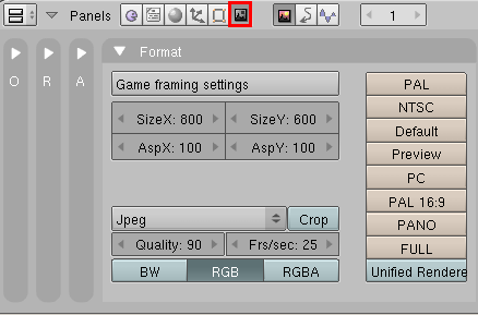Con F10 (vas a Scene) y a la derecha tenes la opciones de formato, presiona con el segundo boton del mousse + horizontal o + y - del teclado numerico por las dudas