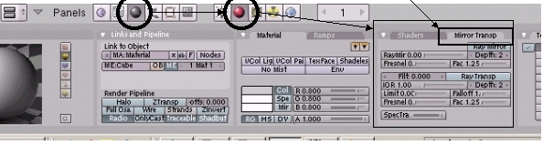 Inicia blender, selecciona el cubo por defecto, y presiona F5 (Shading) o presiona esa bolita roja y al lado de \"shader\" encuentras el boton mirror transp (presonalo para ver sus propiedades).
