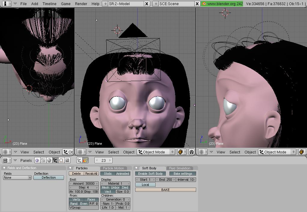 Bien pues disculpen por meterme en otro foros pero es que cuando se crea un foro nunca contesta nadie en fin creo que ya encontré el defecto de porque se veía calvo el personaje, al parecer el circulo guía que se marca en la línea es representación de la profundidad de la piel e indica la dirección en la que nace el cabello