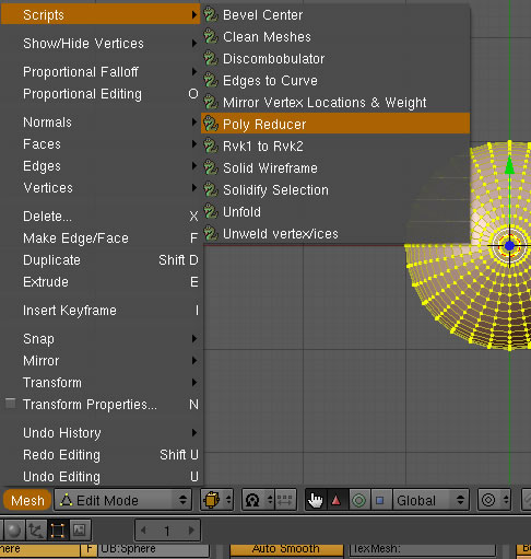 2) Ya en el modo de edición seleccionas el menú mesh > scripts > Poly Reducer.