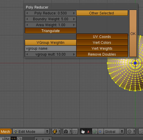 3) Seleccionas las opciones de reducciones y haces un click en el botón \"ok\" y listo!. (el proceso tarda algún tiempo en lo que Blender hace el calculo de reducción).