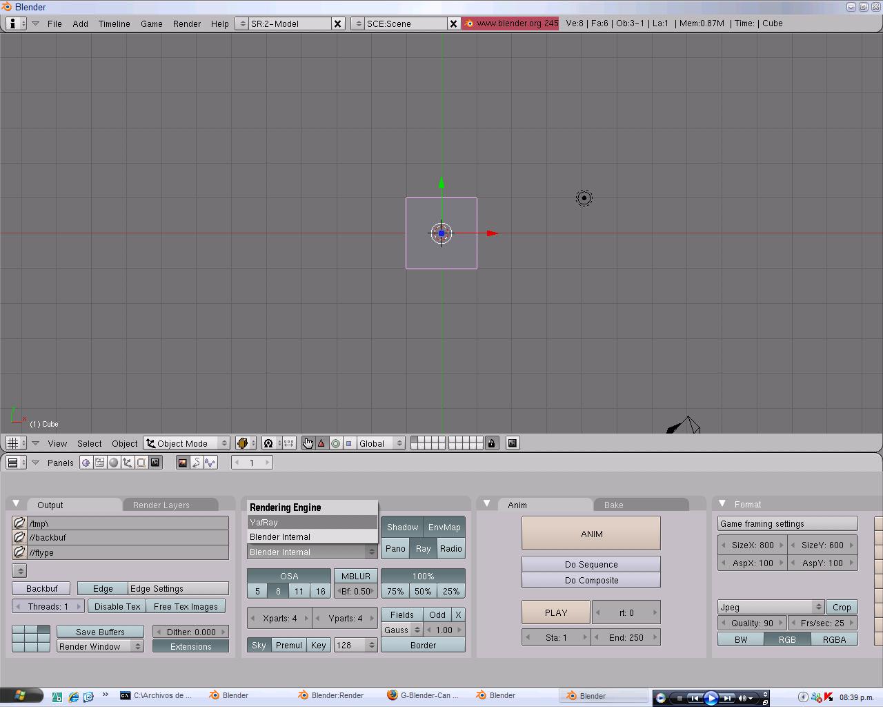 Lo segundo: en la ventana Yafray, debes deseleccionar el botón XML (que no quede marcado)