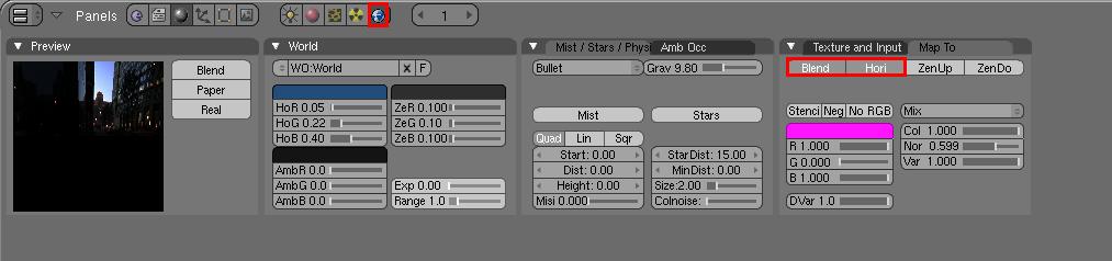 te vas al boton world y luego apretas F6 y haces lo mismo, le das una textura tipo imagen, volves a world y en map to marcas Hori..