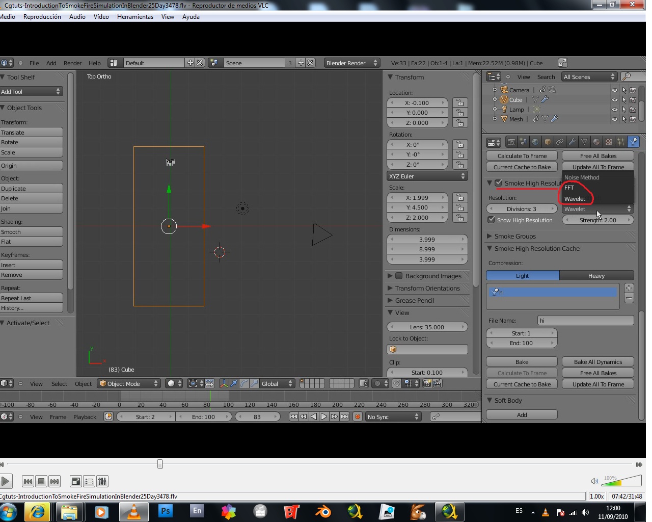 Hola compañeros, en TODOS los video tutoriales de humo que he encontrado a la hora de darle una Alta Resolución al humo, todos clickean la opción FFT. En TODOS los \"Blender\" que he bajado en ninguno me da esa opción, sólo sale \"Wavelet\".