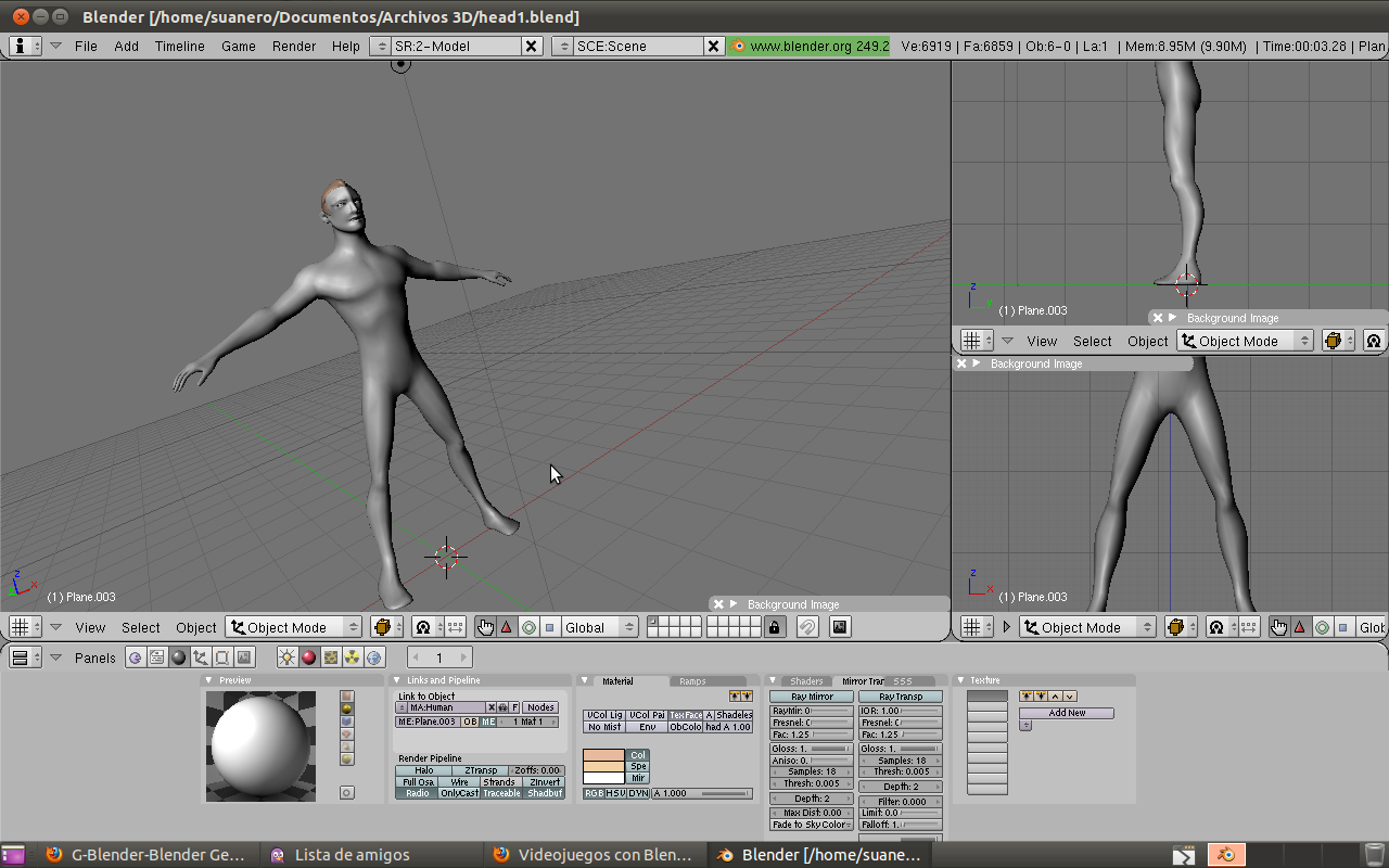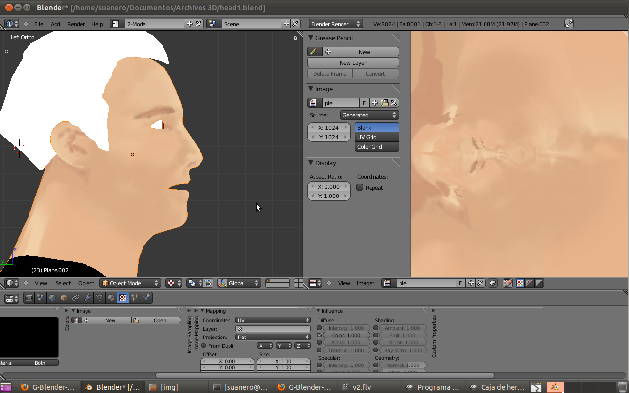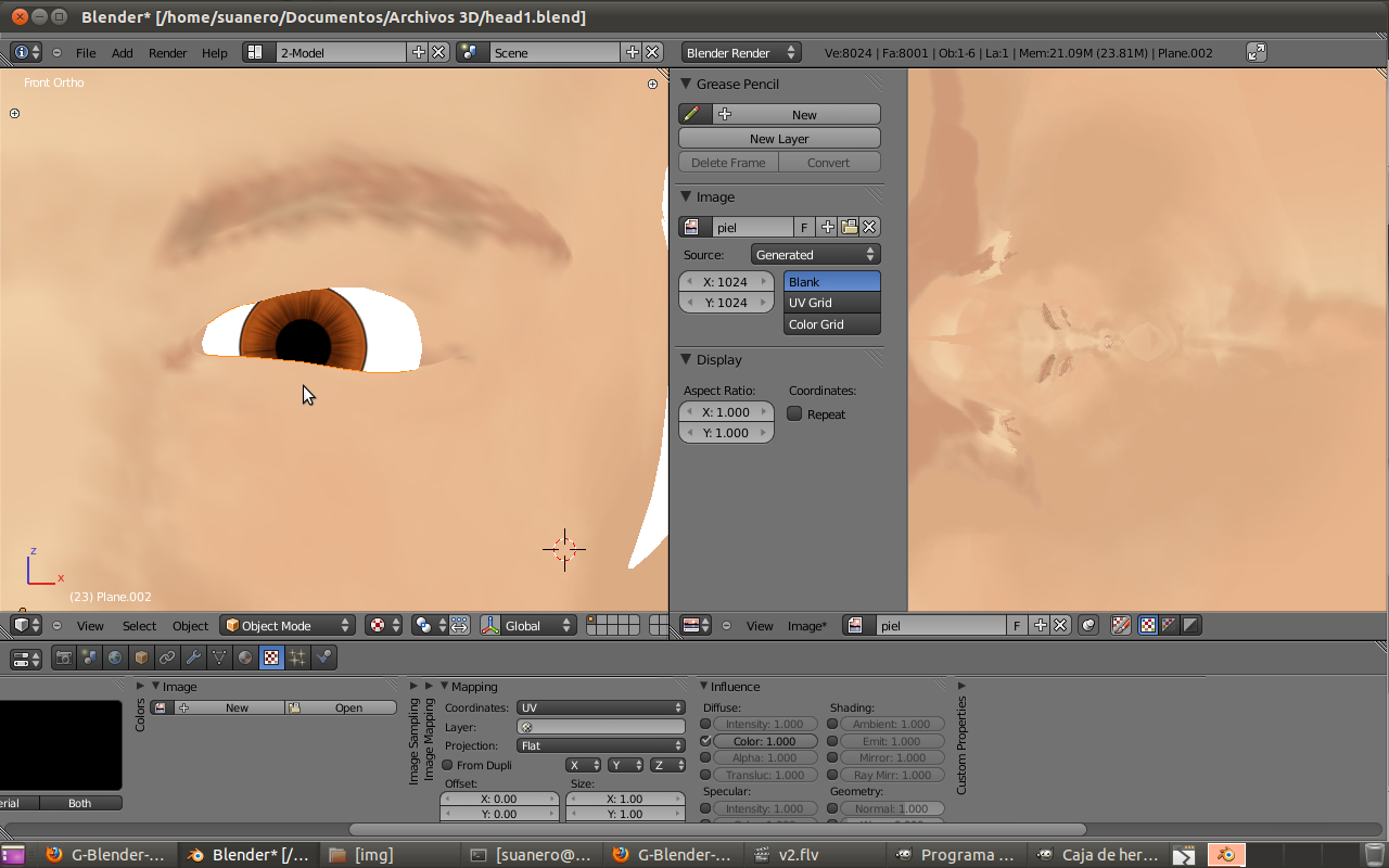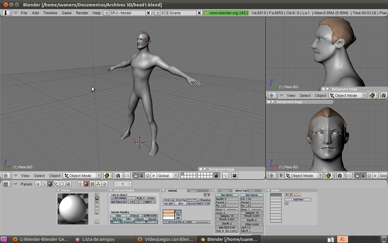 en si quiero saber si hay algun manual o tuto, etc que ayude a hacer texturizados ya vi que haiendo los mapeados creo Uv pero es que no encuentro la forma de ponerle (hacer los) colores (skin) de piel a mi pj ya lo intente pero se ve muy chafa :S les dejo unas fotos sin color esta bn hasta los ojos ya tienen textura pero las voy a mejorar asi es para que se puedan ver en game engine. la luz esta enfrente del pj por eso se ve una linea en medio.