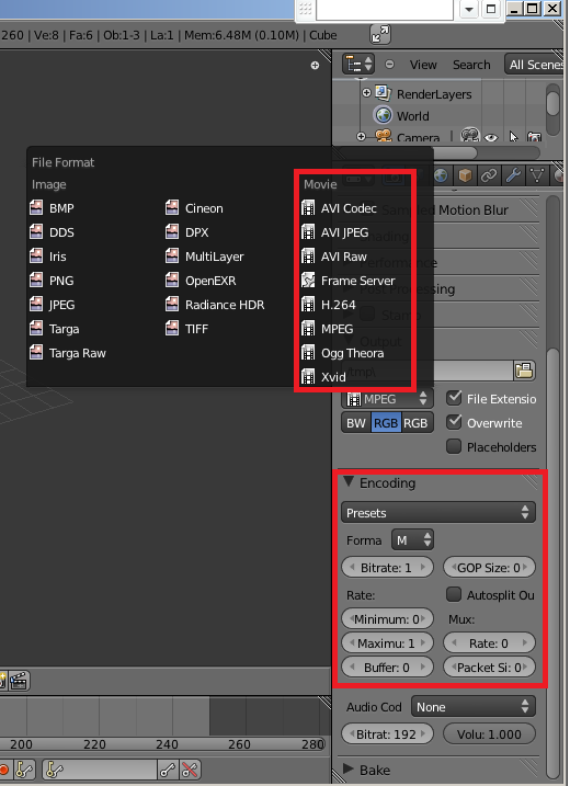 En blender 2.60 ¿Porqué no aparece \"encoding\" en Properties-Render? Y en Output-File Format-Movie, sólo aparecen tres formatos de salida (AVI JPEG, AVI RAW Y FRAME SERVER).
