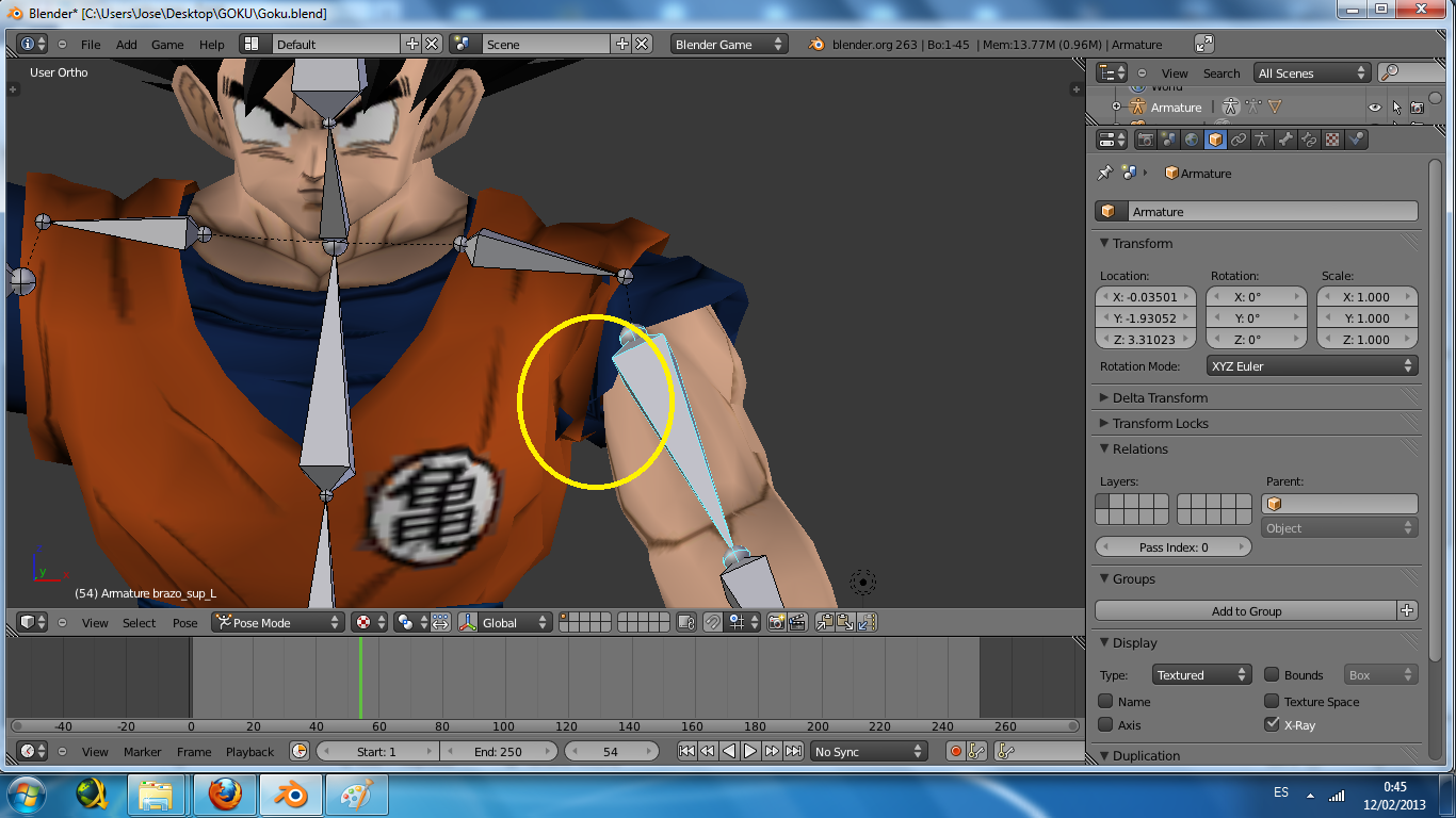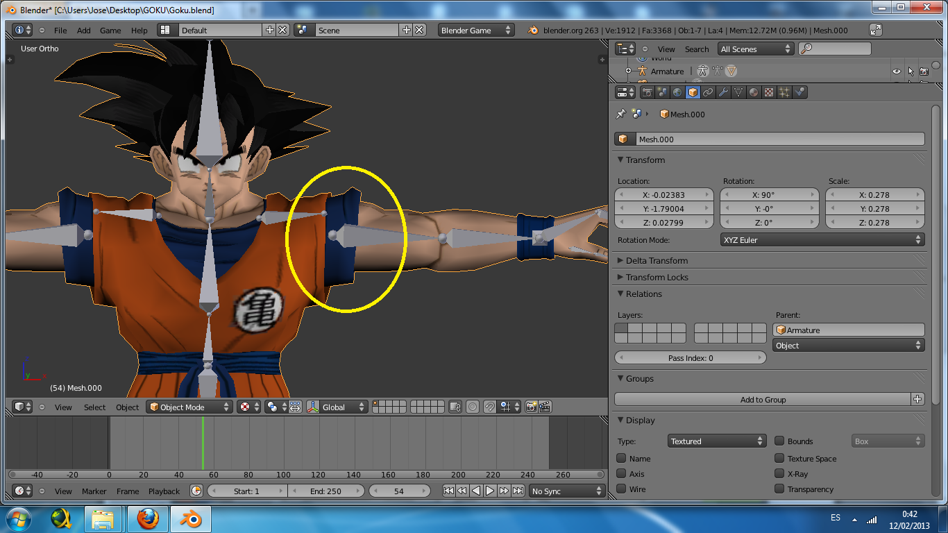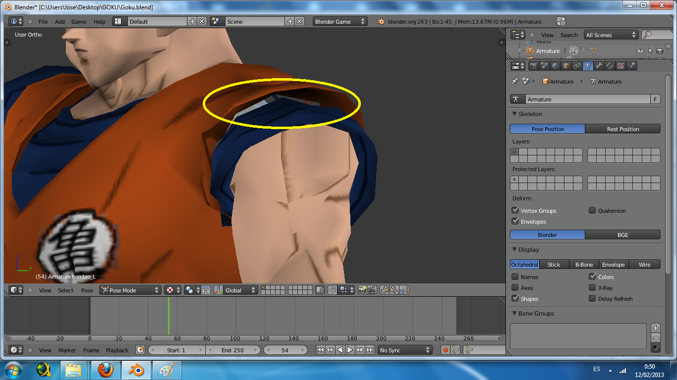 El modelo que estoy usando es un modelo de goku que me he bajado de internet, y deciros tambien que bajo la ropa no hay cuerpo, es decir, que el brazo empieza justo donde acaba la manga. Y al mover el brazo... pues se me ven \"huecos\" vacios.