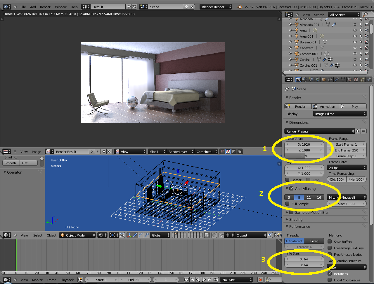 03. lo mejor es usar cantidades iguales ej: 16 x 16, 32 x 32, 64 x 64, 128 x 128, eso es como el tamño del area de procesamiento de render asi que 64 x 64 el area de procesameinto de render sera de 64 pixels de alto por 64 pixeles de ancho, asi es como prosesara tu imagen final. tambien eso influye mucho en el tiempo de render y al hacerlo como te mencione hara que tu pc trabaje mejor el render!