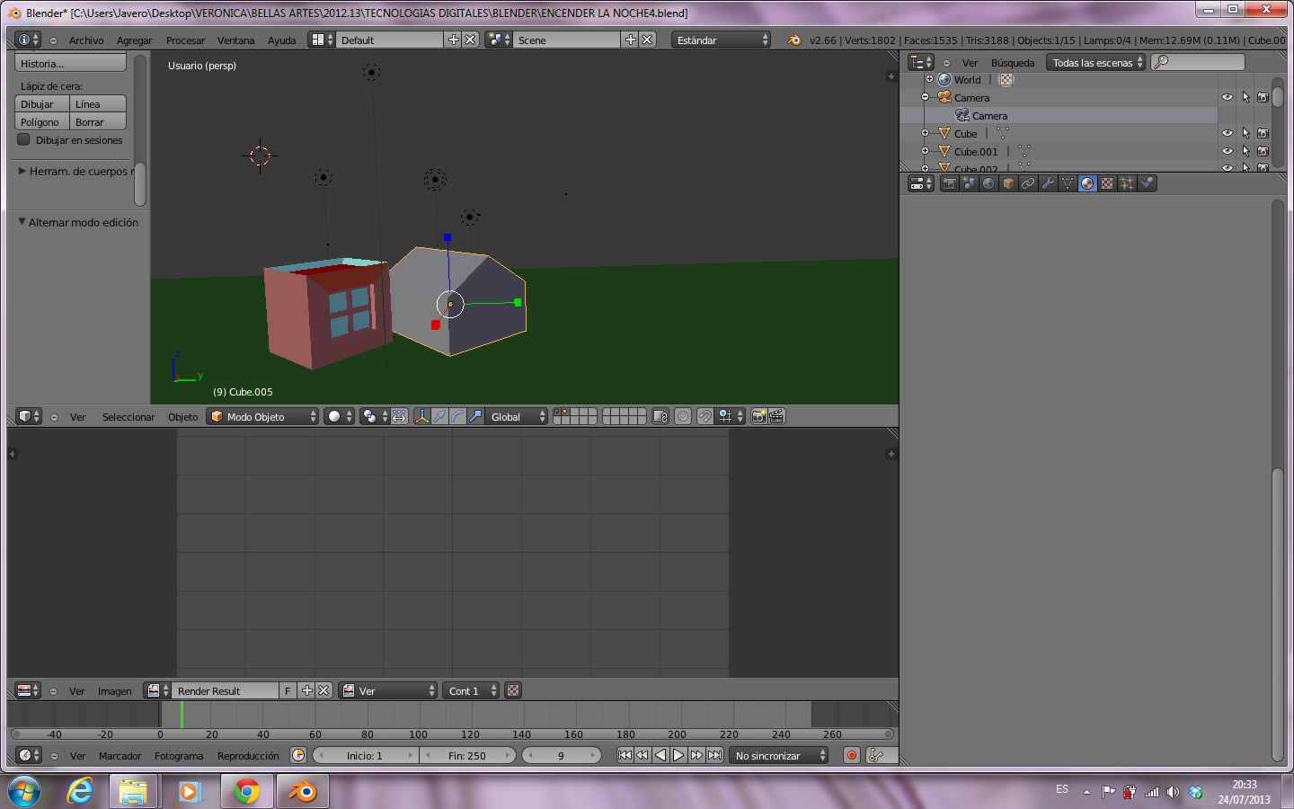 Ahora tengo un problemilla. Y es que añado un cubo a la escena que ya tengo, y sin embargo no me aparecen las opciones para modificar los \"materiales\", como en los otros casos que he añadido otras mallas. Alguien sabe por qué puede ser?