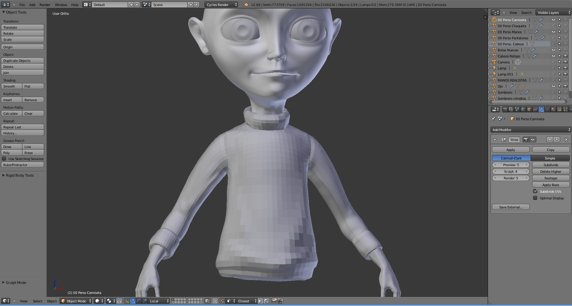 Hasta ahí todo perfecto, en modo esculpir, la definición conforme trabajo esta OK. Sin embargo paso a Object Mode y la resolución del objeto baja. Hago un render y me muestra la resolución baja que estoy teniendo en Object Mode.