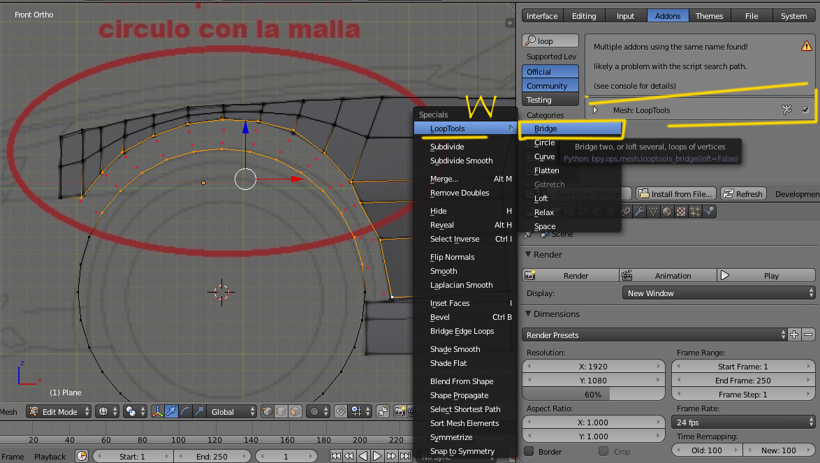 Se seleccionan los \"mismos\" vértices en las dos partes y se presiona W > Loop Tools > Bridge y te une todos esos vértices individualmente.