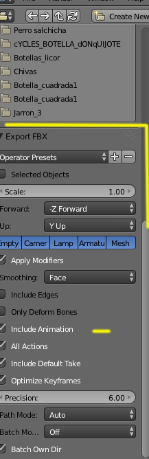 Puedes ver si está activado, en el panel que sale abajo a la izquierda, en el momento de hacer el Export > FBX