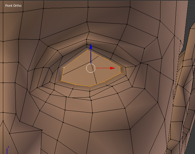 Pues si no se va a ver demasiado, con hacer una extrusión más de la parte interior del ojo y esclarlo a más pequeño, se solucionaría...