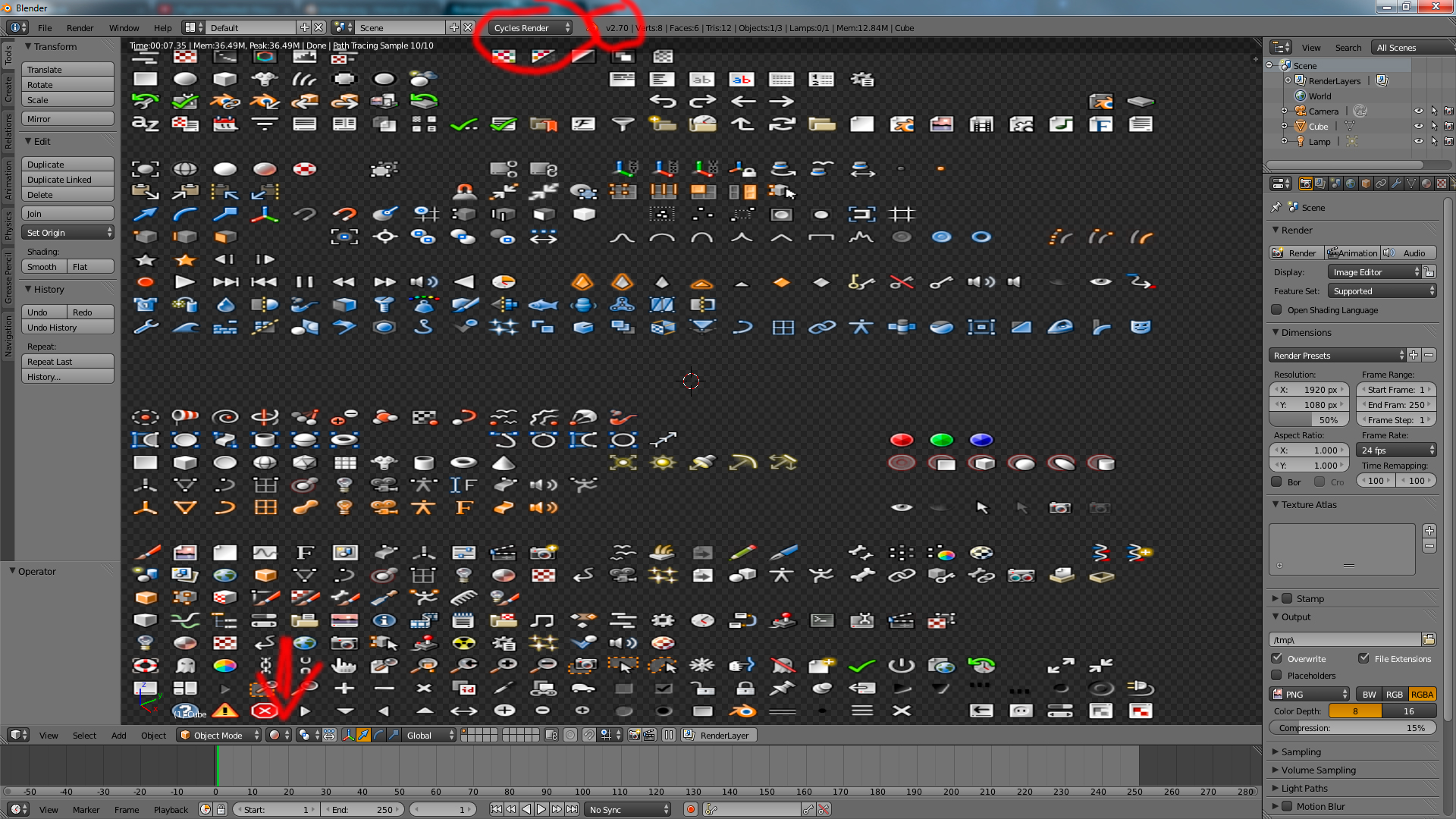 Me aparecen todos los iconos sin dejarme ver la escena. Aunque no da ningún error , y los samples se marcan como sucedia antes.
