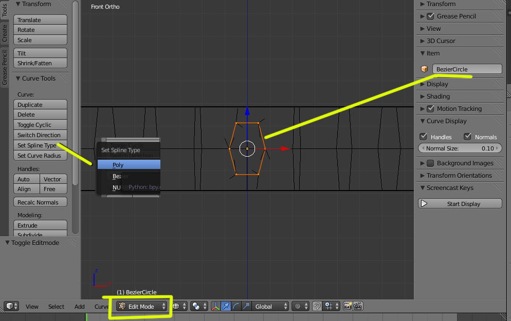 Y otra cosa, ¿como se puede conseguir que un exagono siga una curva bezier? creando de este modo un tubo exagonal?
