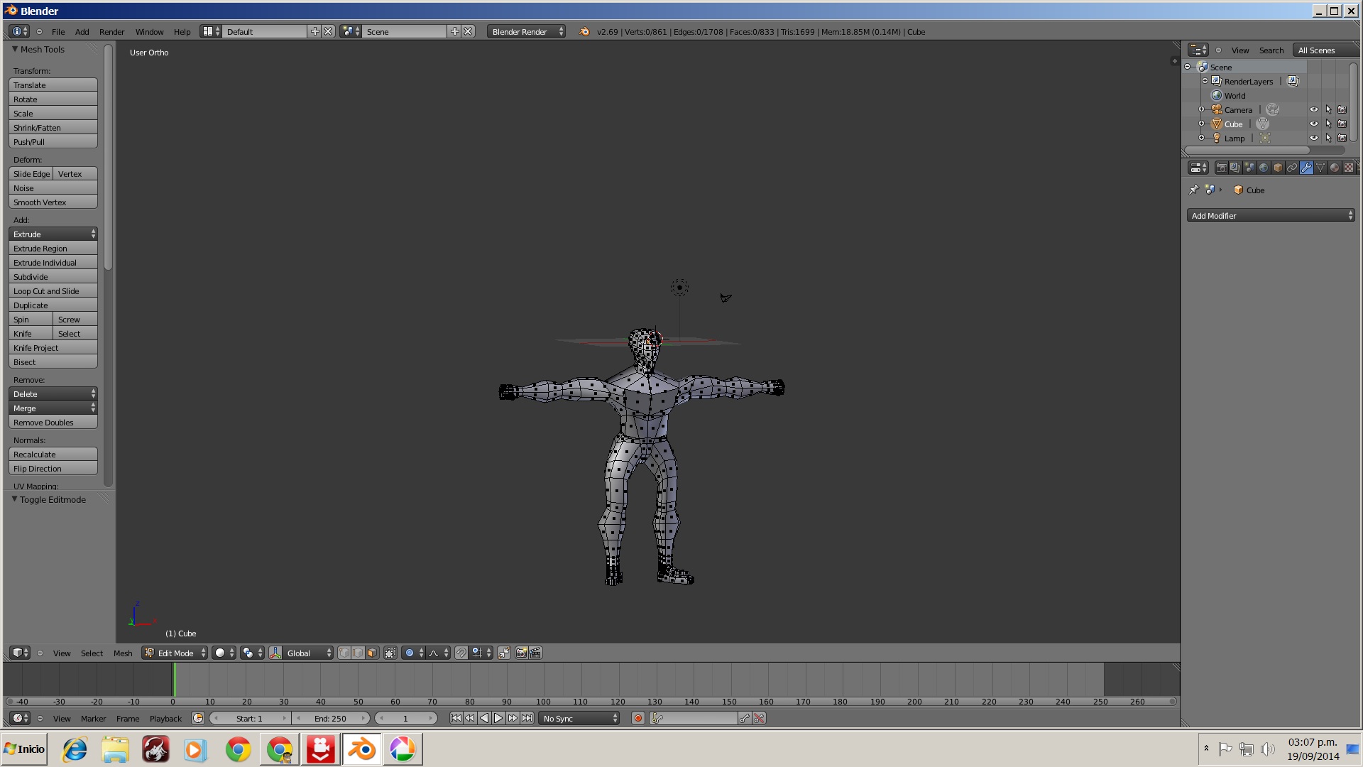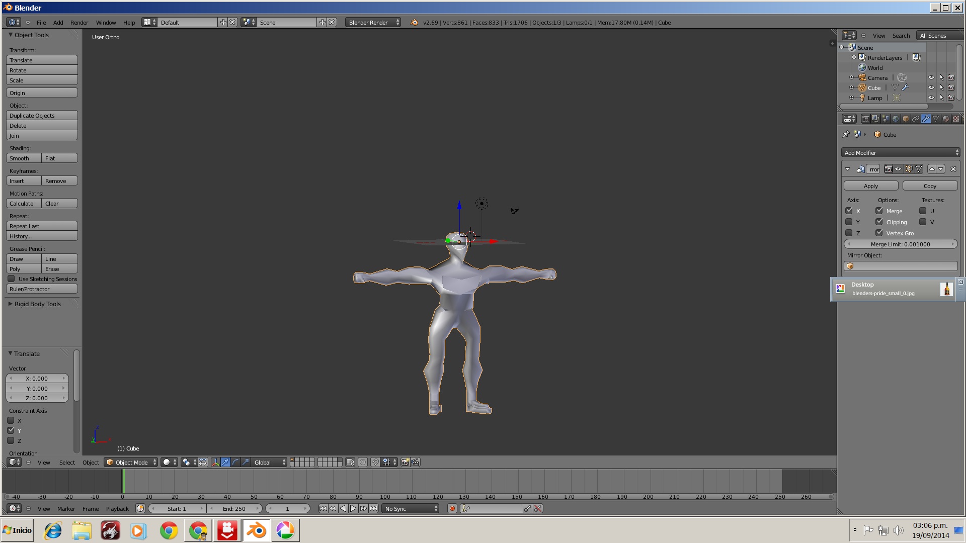me parece que radica el problema en estruir un vertice, casualmente un vertice esta a la altura de la tetilla, entoces lo extrui en el eje y, tome forma un poco conica, pero luego de los costados de la union con los hombros pude corregirlo, de todas maneras gracisa por el hecho de que habia olvidado de remover los dobles, ¿que opinas de las normales? digo por si deseo aplicarle textura. aunque por el momento quiero usar el esquema de cuerpo para luego ponerle otros rostros y hacer asi una seleccion de personajes basados en ese cuerpo.