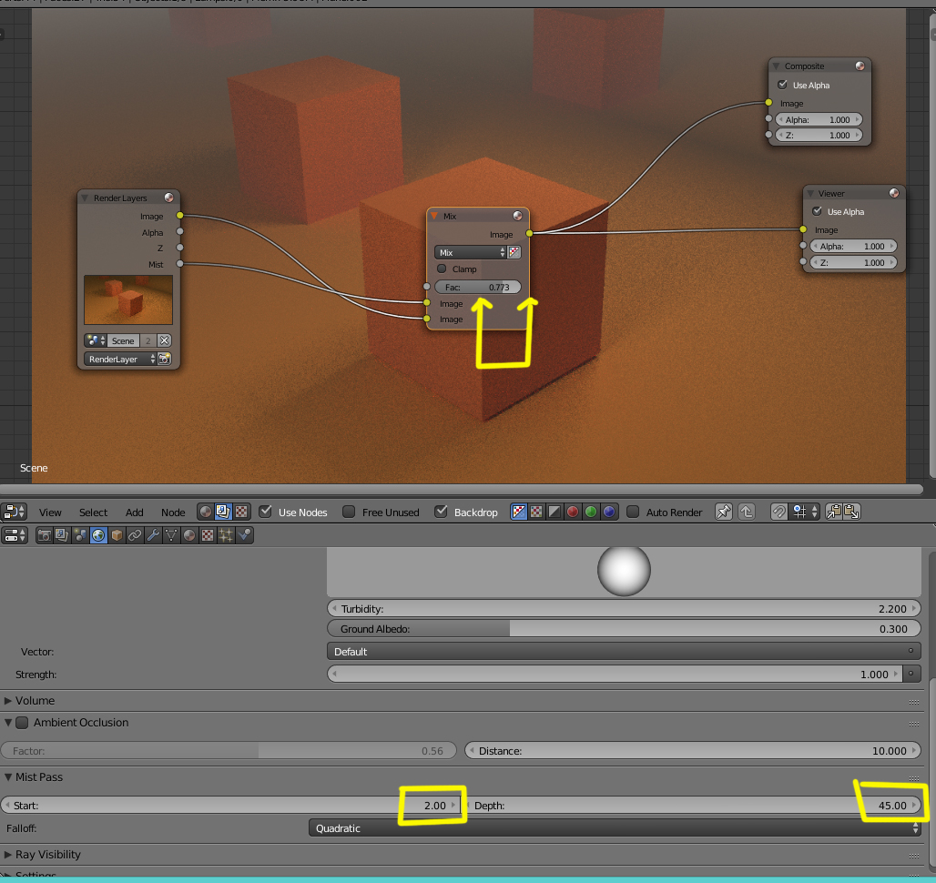 A parte de esto, esa distancia la puedes variar con el mismo nodo MIX, donde cambiando el valor de 0.500 a 1 te acercará alejará esa niebla (mas o menos).