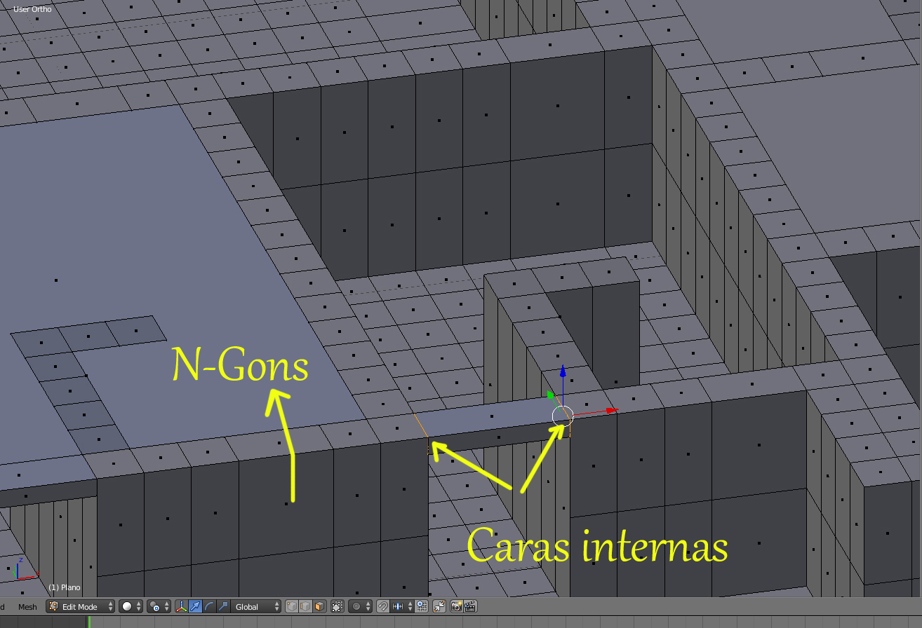 Tiene caras internas y c caras con n-gons (mas de cuatro vértices o lados).