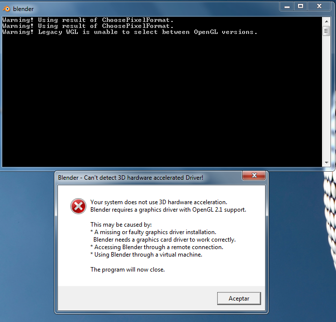 Mensaje de Error al cargar Blender 2.77