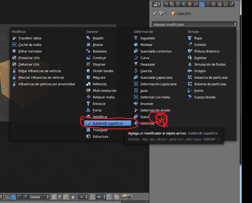 Acá les dejo algunas imágenes para que puedan ver a que cosa yo me refiero (Tengo el Blender en español)