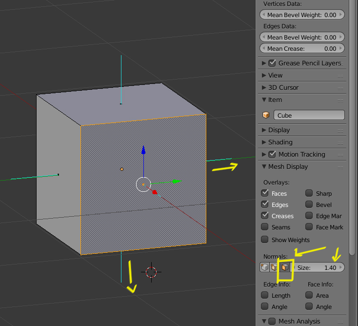 Si quieres ver las normales del objeto, puedes hacerlo desde Mesh Display y activas la casilla de CARAS (Faces)