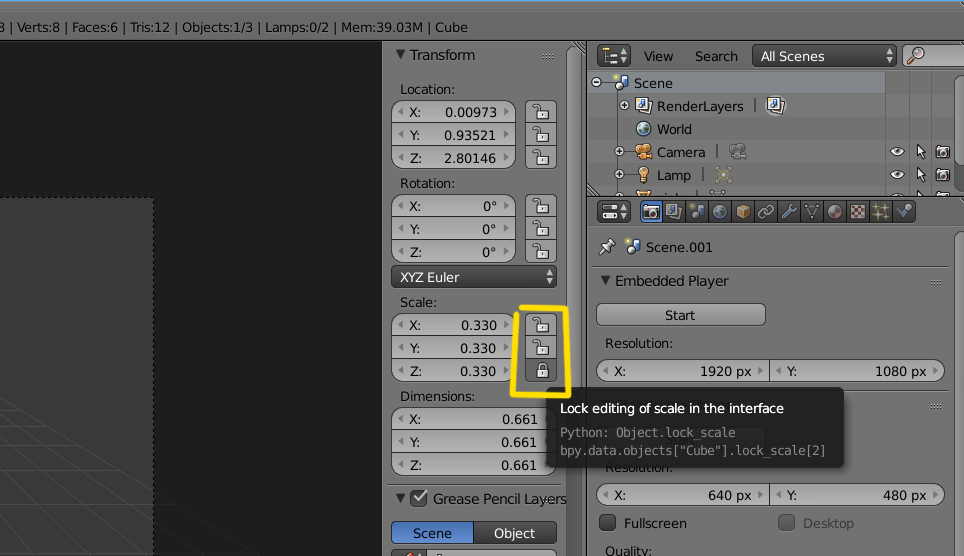 lo que sucede es que estaba trabajando y luego en un momento en object mode no pude utilizar la opcion de scale ni de rotación, para poder utilizarlas me toca entrar en edit mode y seleccionar todo el objeto y luego si cambiarle el tamaño o rotarlo, como puedo solucionarlo?