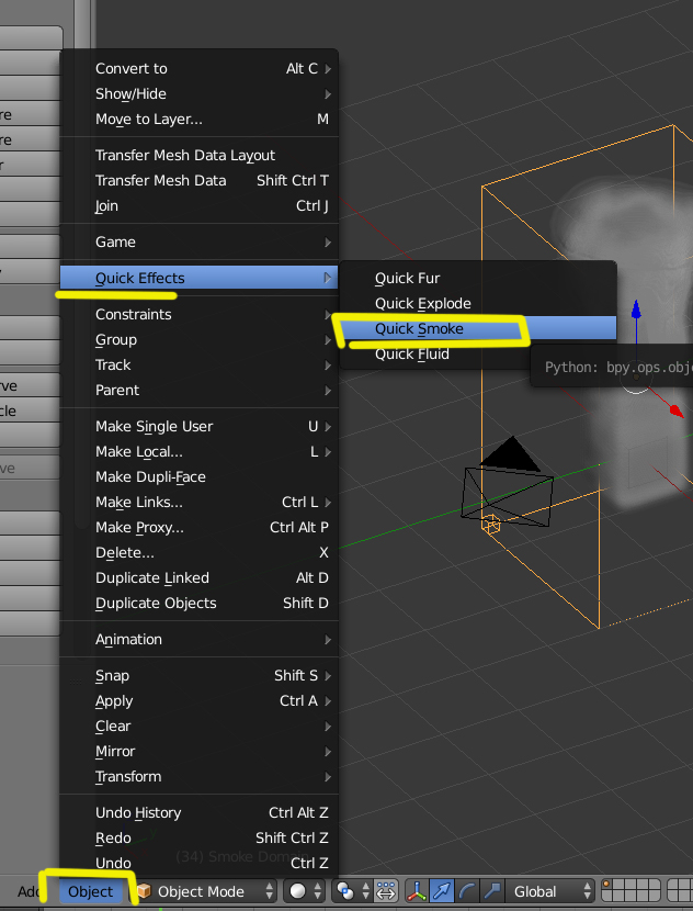Primero coges un objeto cualquiera cubo, esfera... , te vas donde pone objeto , le das a EFECTOS RAPIDOS le das a humo rapido.