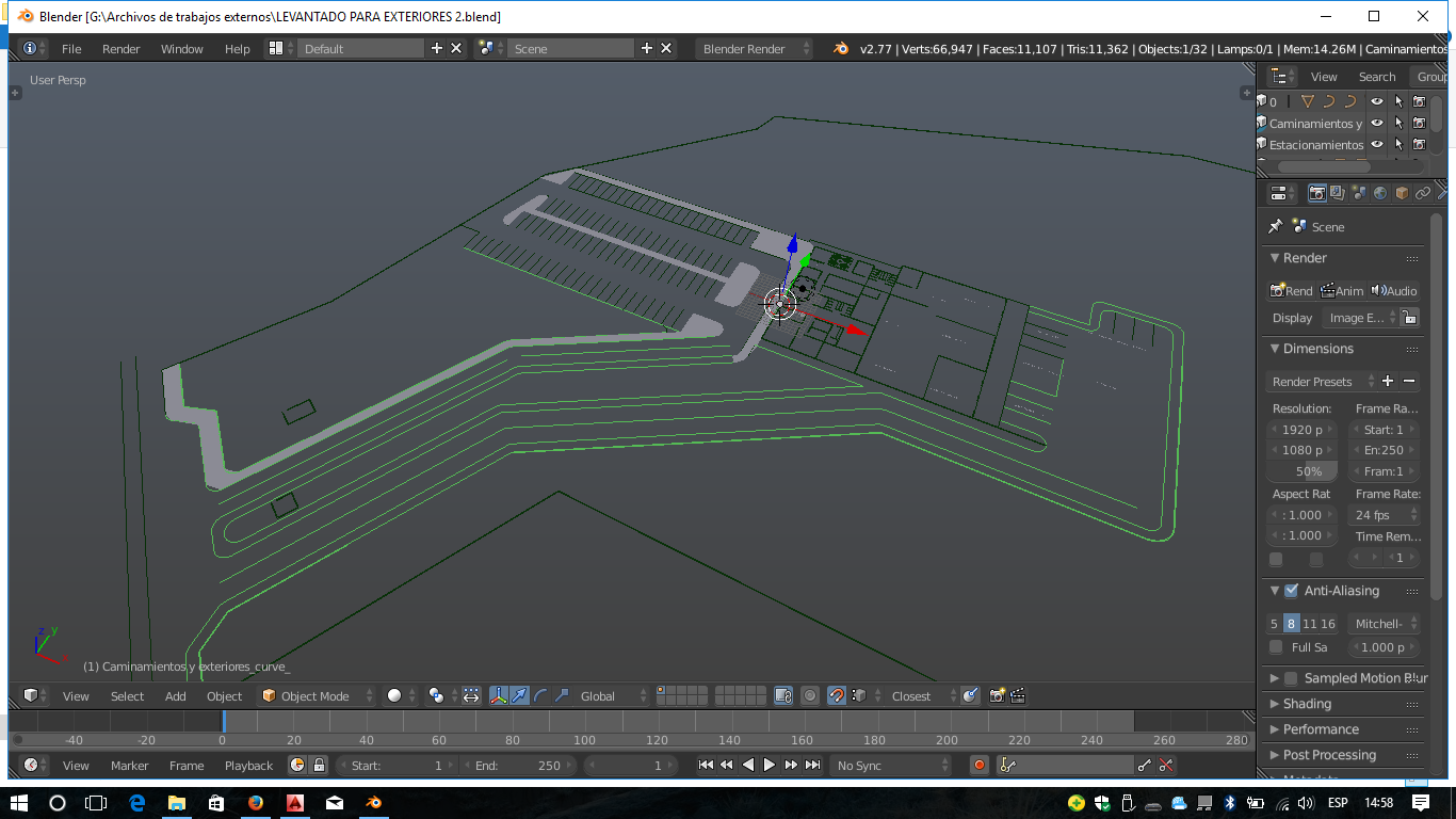 Para el tiempo que tengo de trabajar con blender preguntar esto debería darme pena, pero la verdad es que no suelo modelar muchas cosas con partes curvas porque siento que es un poco complicado. En estos momentos estoy haciendo el modelado de unas oficinas y fábrica, en base a unos planos hechos en Autocad, y tengo que modelar caminamientos y aceras con esquinas curvas, pero no logro hacerlo correctamente, no conozco muchas formas de hacerlo y crear la cara usando F, pero casi siempre las caras no salen bien. Por lo que me he visto obligado a hacer las aceras usando planos y extruirlo usando snap en los vértices, ¿Hay alguna forma de modelar este tipo de objetos de forma más sencilla?.