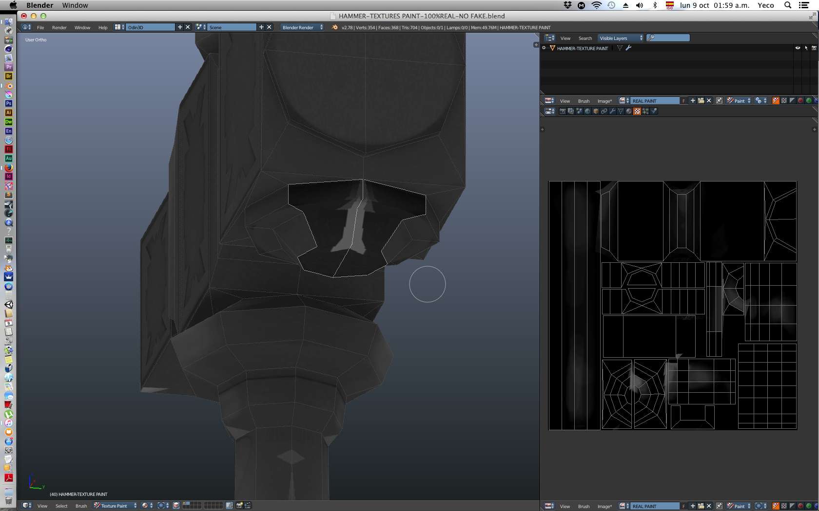 Yo estoy tomando un curso del programa y vamos tocando el modo pintado. En fin, estaba usando las mascaras de geometría para pintar un martillo y me di cuenta de que en areas del martillo que no habia seleccionado se pintaban estos "errores", me vi otra vez los tutoriales y al tutor no le salen estos errores, si alguien me puede decir como resolver esto y como hacer para que esto no se vuelvan a producir se lo agradeceria bastante, por favor.