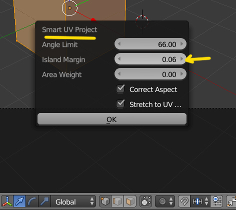 Si has desplegado la malla con Smart UV Project hay que darle mas margen a la separación de piezas, para que cuando pintes en uno, no te pinte sobre el otro.