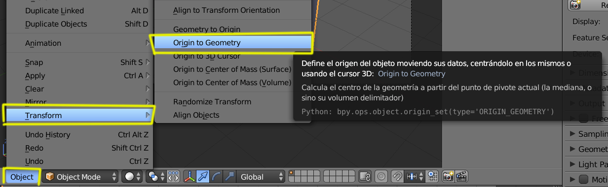 Para recuperar el centro del objeto, o sea, colocar el ORIGIN en en centro del objeto hay que hacer un "Origen a la geometría"