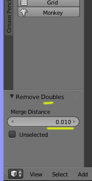 Para solucionar eso, seleccionas todos los vértices y W > Remouve Doubles (remover vertices duplicados).