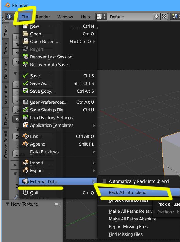 Una vez tengas todas las texturas bien puestas, es cuando se empaqueta desde File > External Data