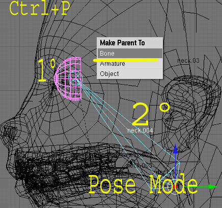 Voy a probar esta forma que me dices, es decir, selecciono por ejemplo la coraza (¿Objet mode claro?) después voy al armature, y selecciono el hueso del torso (Aquí tendría que pasar a edit mode no ?) y después desde pose mode hago un parent.