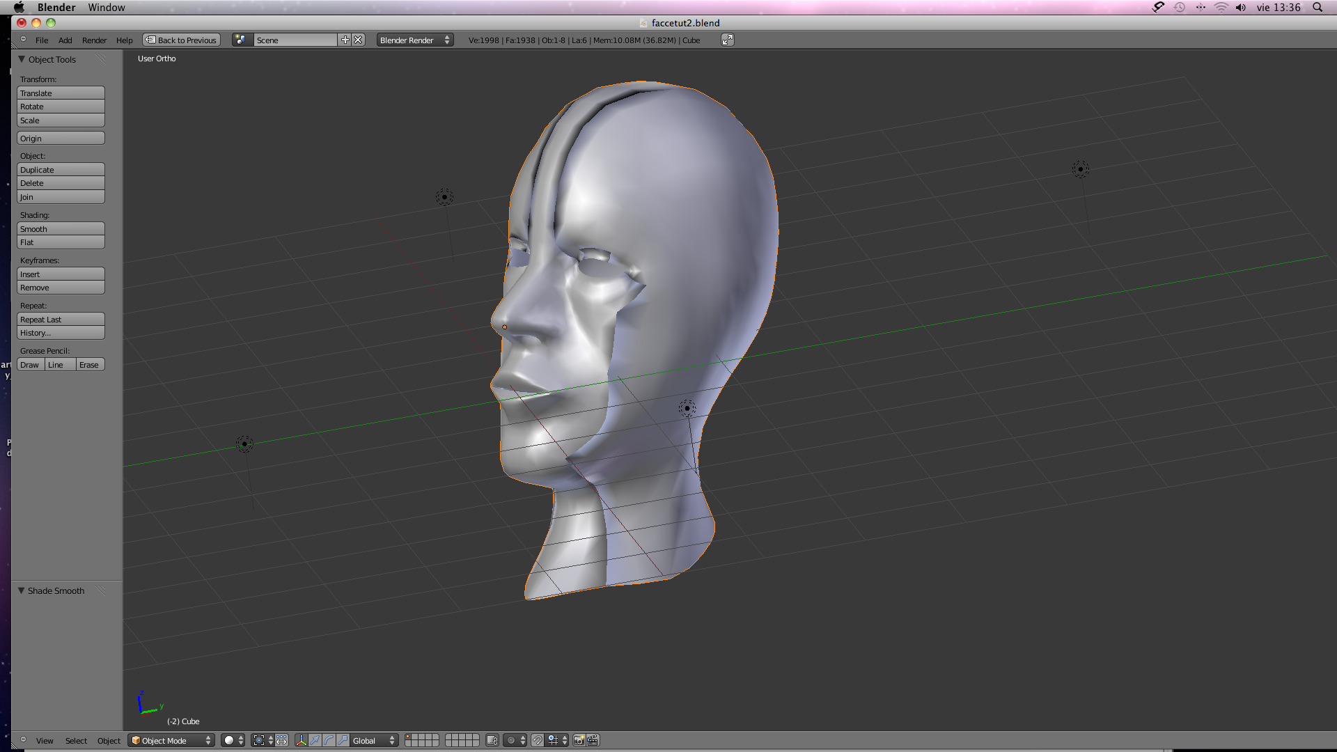 Sigo en la lucha por aprender blender y siguiendo unos tutoriales de modelado me puse a modelar un rostro pero cuando acabo aparece así y me gustaría saber que es lo que estoy haciendo mal dejo el archivo .blend para ver si alguna alma caritativa lo mira.