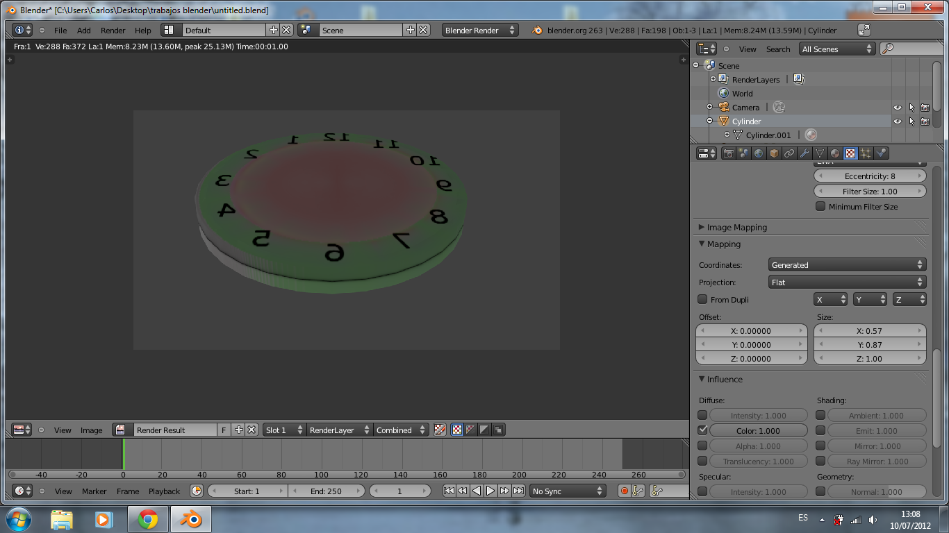 Estoy probando lo de las texturas los hago en gimp y lo paso a blender pero me sale la textura en todos lados (intento hacer un reloj de pared.)¿Como puedo hacer para que solo en una cara tenga esa textura¿ 2ºComo puedo ver cada cambio sin tener que dar F12?