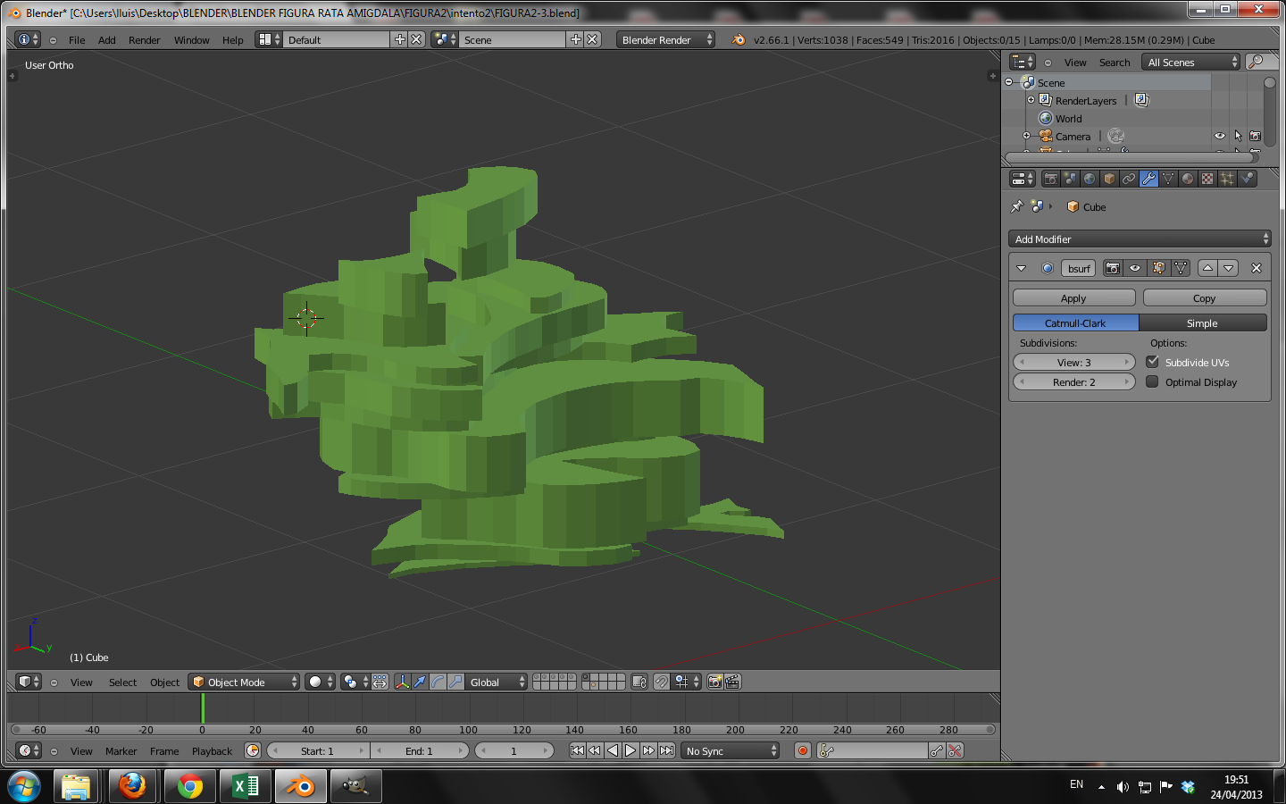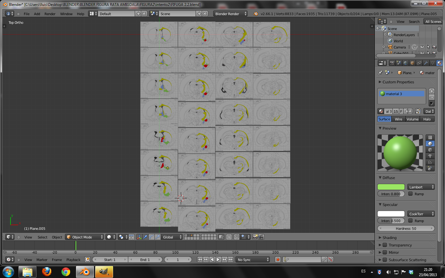 Estoy haciendo el doctorado en neurociencias. Lo primero de todo, realicé el modelado de un encéfalo de ratón. Me quedó muy guapo por cierto.