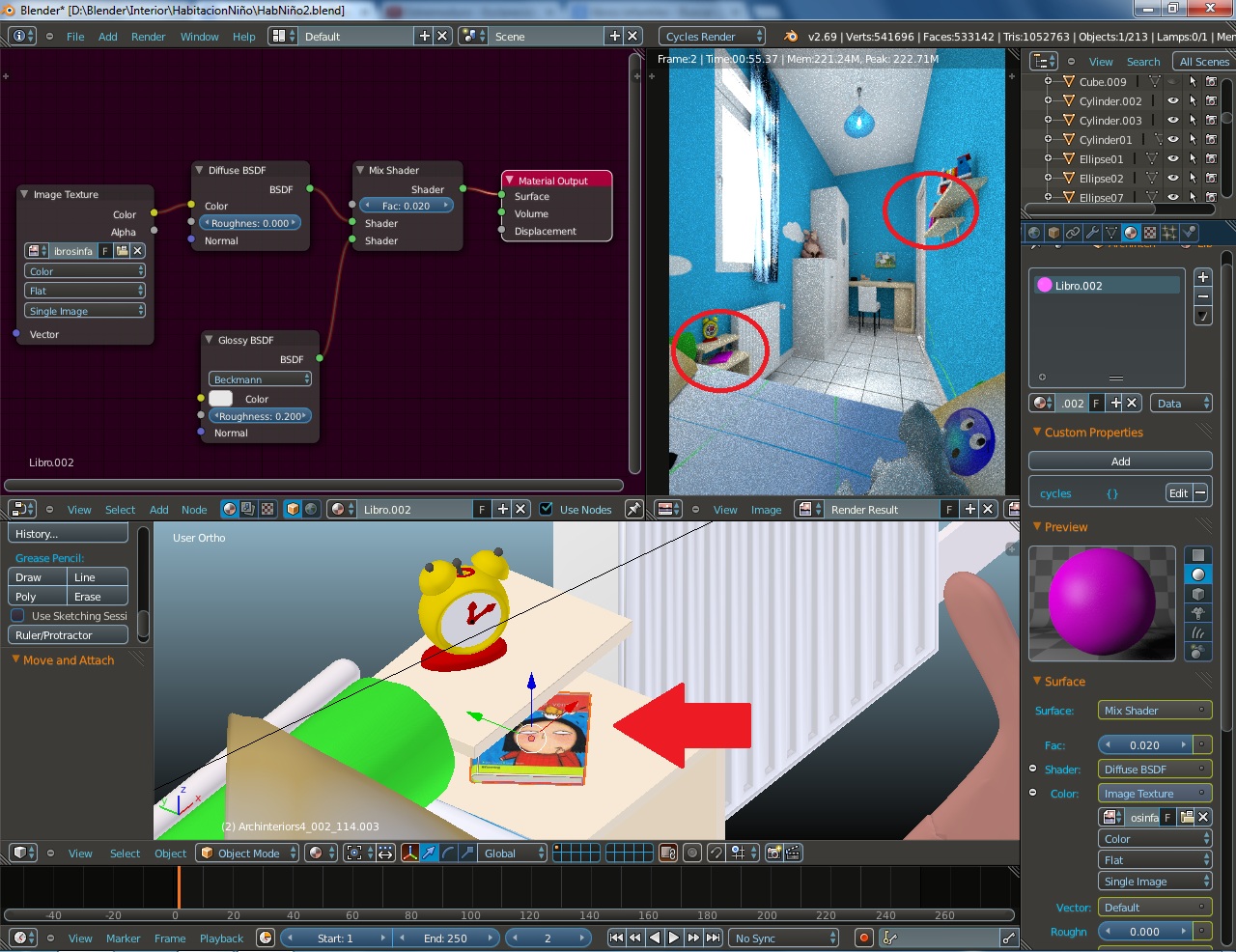 Wola, estoy terminando otra escena y me ecuentro con este problema, no se ve la textura de los libros! ya me habia pasado con otra escena y no se por que...