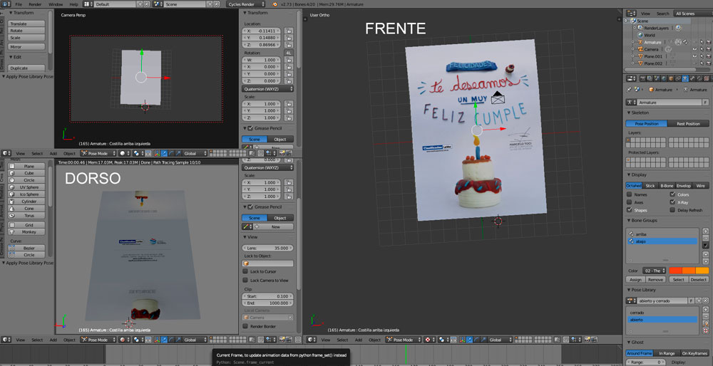 Hola!! Estoy haciendo una tarjeta de felicitaciones que se abre y cierra, y venía todo bien hasta que empecé a armar las poses.